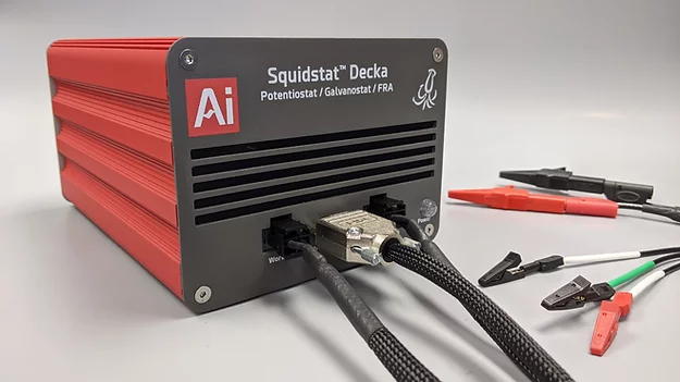 每個 Squidstat Decka 包括一根 100 cm 工作電極電纜、一根 100 cm 反電極電纜、一根 100 cm 感應電纜(帶參考、工作感應、反感應連接)、一根 USB 電纜和一根連接電源插座的電源線。 購買時包含 Squidstat 用戶界面軟件和無限制的遠程技術支持。
