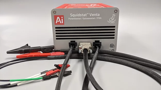 每個 Squidstat Venta 包括一根 100 厘米工作電極電纜、一根 100 厘米反電極電纜、一根 100 厘米感測電纜(帶參考、工作感測、反感)連接、一根 USB 電纜和一根用於連接電源插座的電源線。 購買時包含 Squidstat 用戶界面軟件和無限制的遠程技術支持。